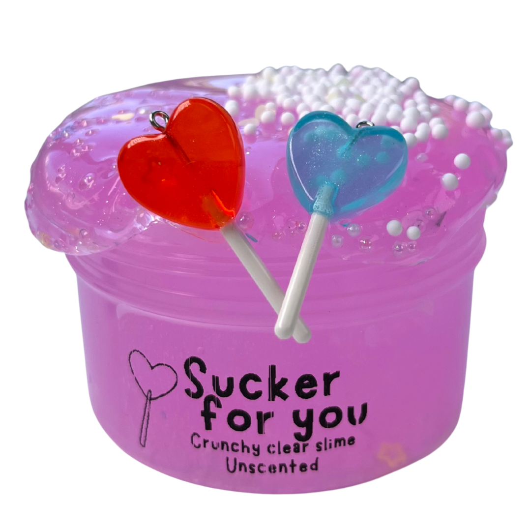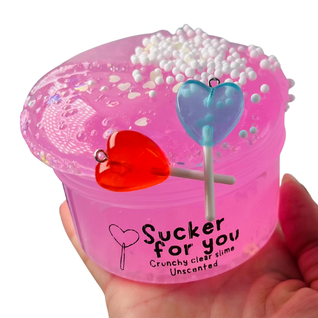 Add-on: One baggie of foam beads that you can add to your slime for extra crunch. Two randomly coloured heart lollipop charms that you can share with your bestie.