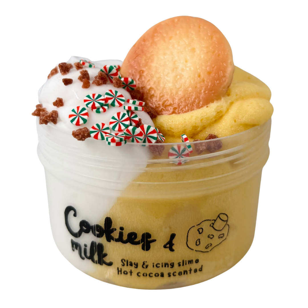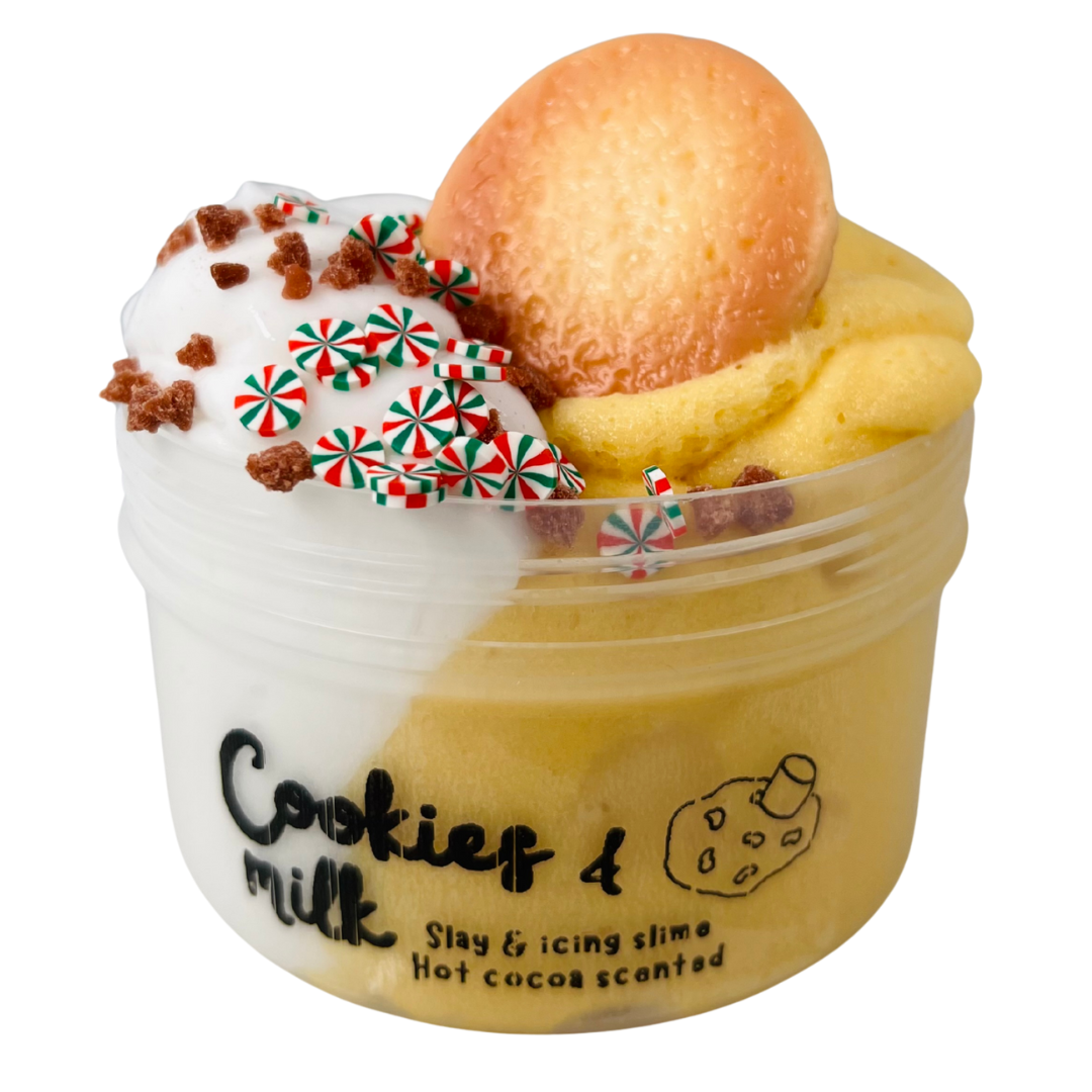 A white slay and cookie coloured icing slime.