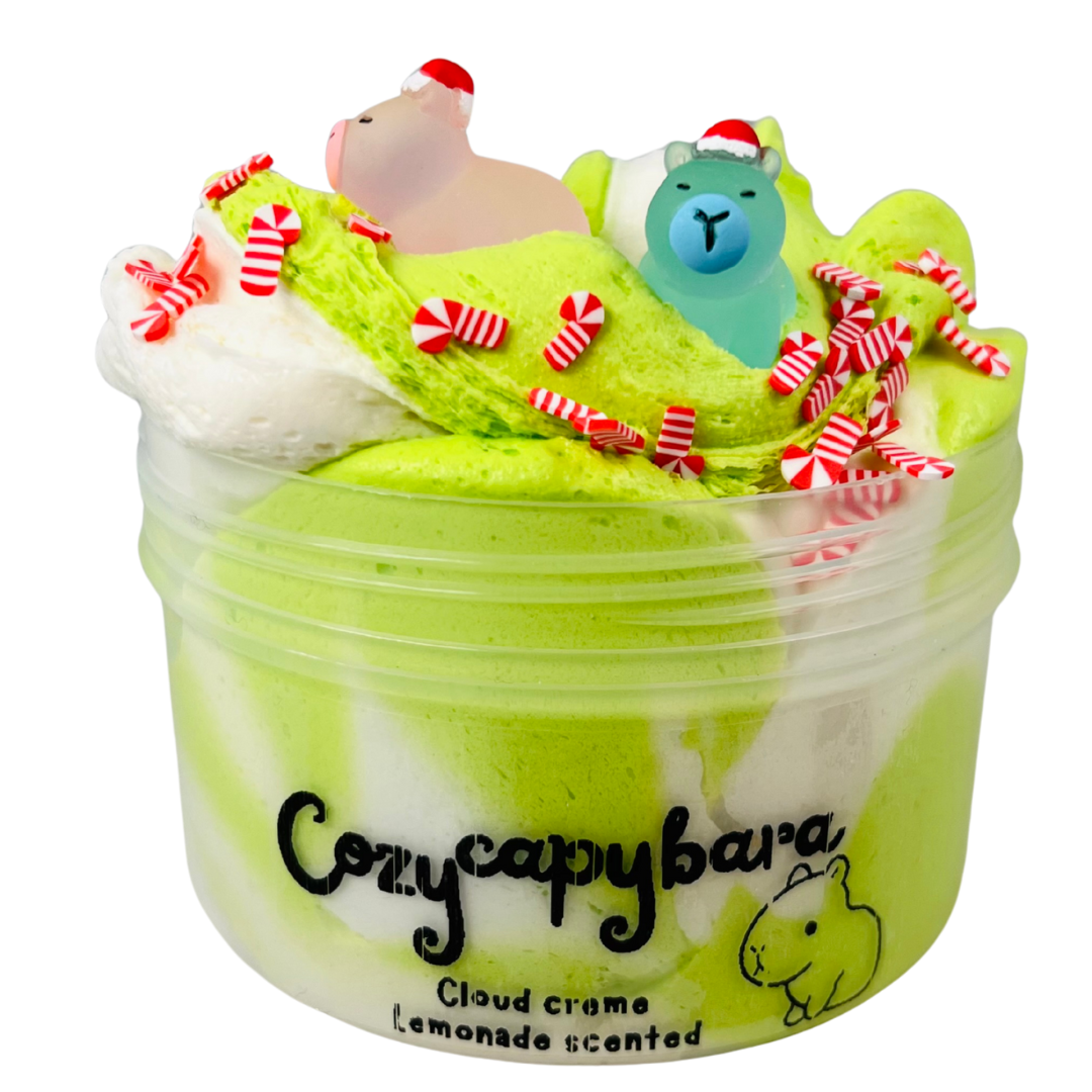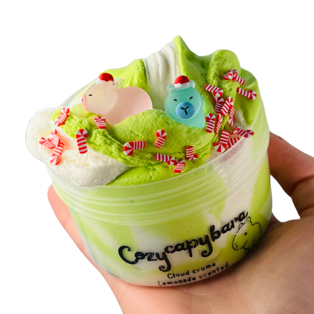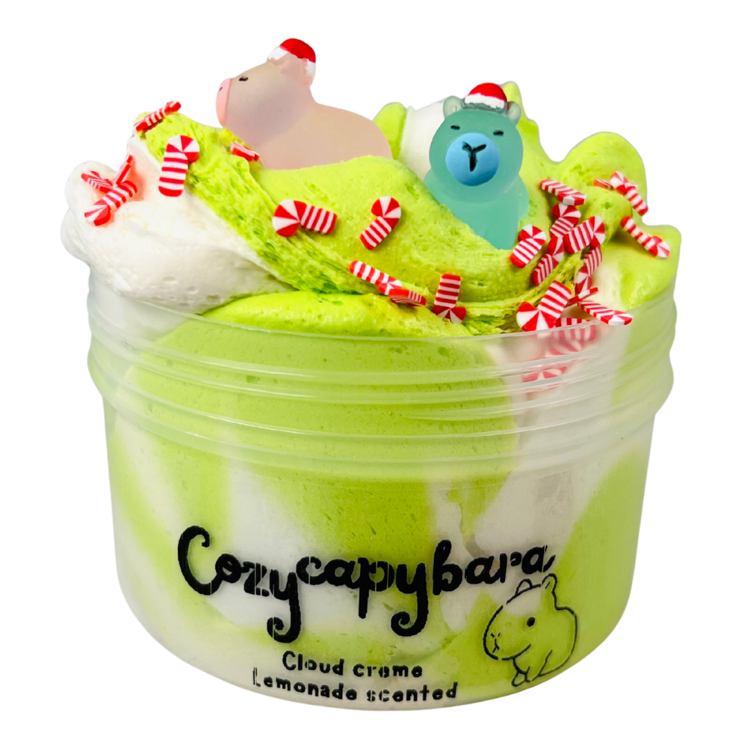 Add-on: One capybara wearing a Christmas hat charm (random colour) and a dash of candy cane fimo slices.