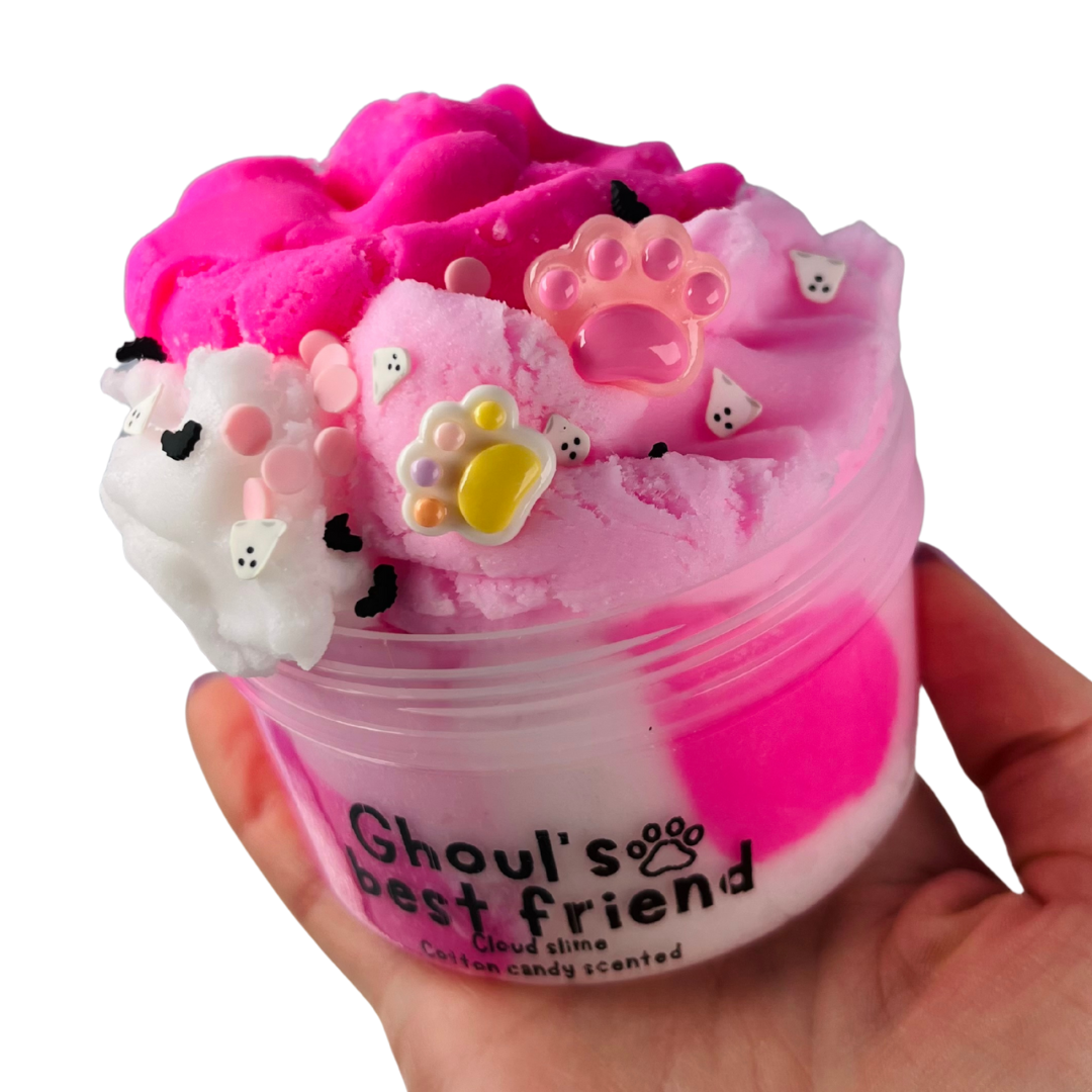 A white, light and bright pink cloud slime.