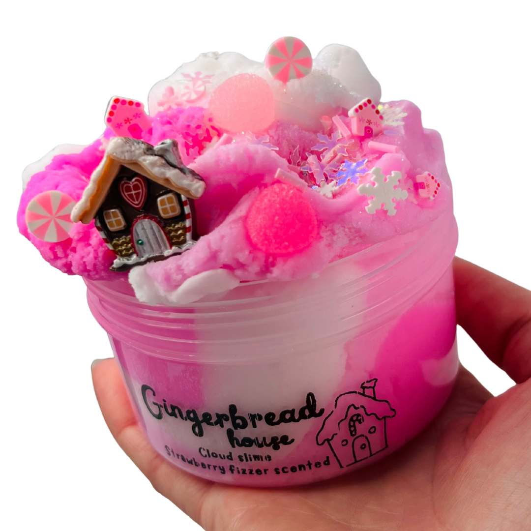 A white & shades of pink cloud slime.